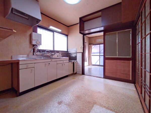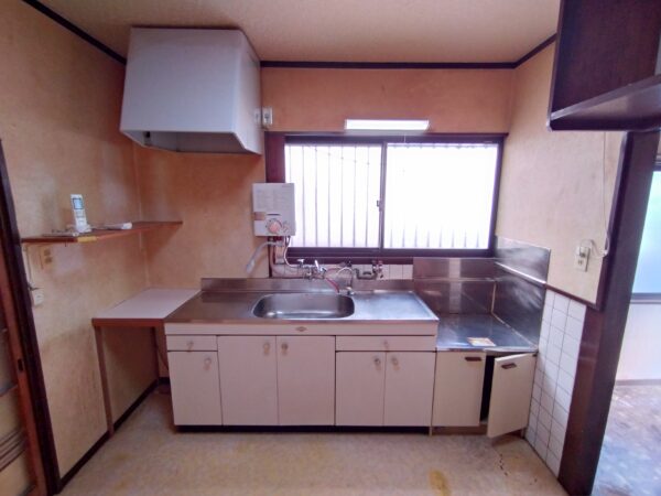 キッチン排水管(雑排水)の接続部分にもれあり。会所桝が沈下しているため、排水管(雑排水)桝の修繕工事が必要です