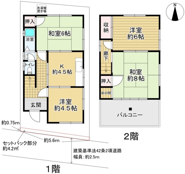 ・前面道路:南側私道(2項道路)幅員約2.5mに、間口約5.6m接面